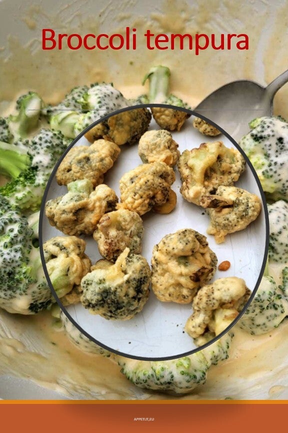 Let op: het kan aantrekkelijk zijn om de tempura wat langer in de hete olie te laten zodat het een mooi goudbruine kleur krijgt maar dan wordt de groente te gaar en dat is niet de bedoeling. De broccoli moet beetgaar zijn en dat resulteert meestal in een wat blekere kleur van de tempura.