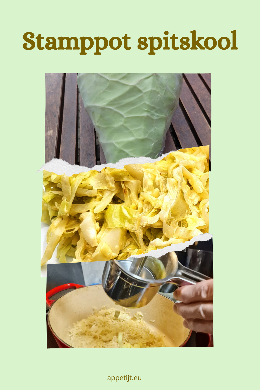 De aardappelen door een pureeknijper bij de spitskool doen en goed mengen.