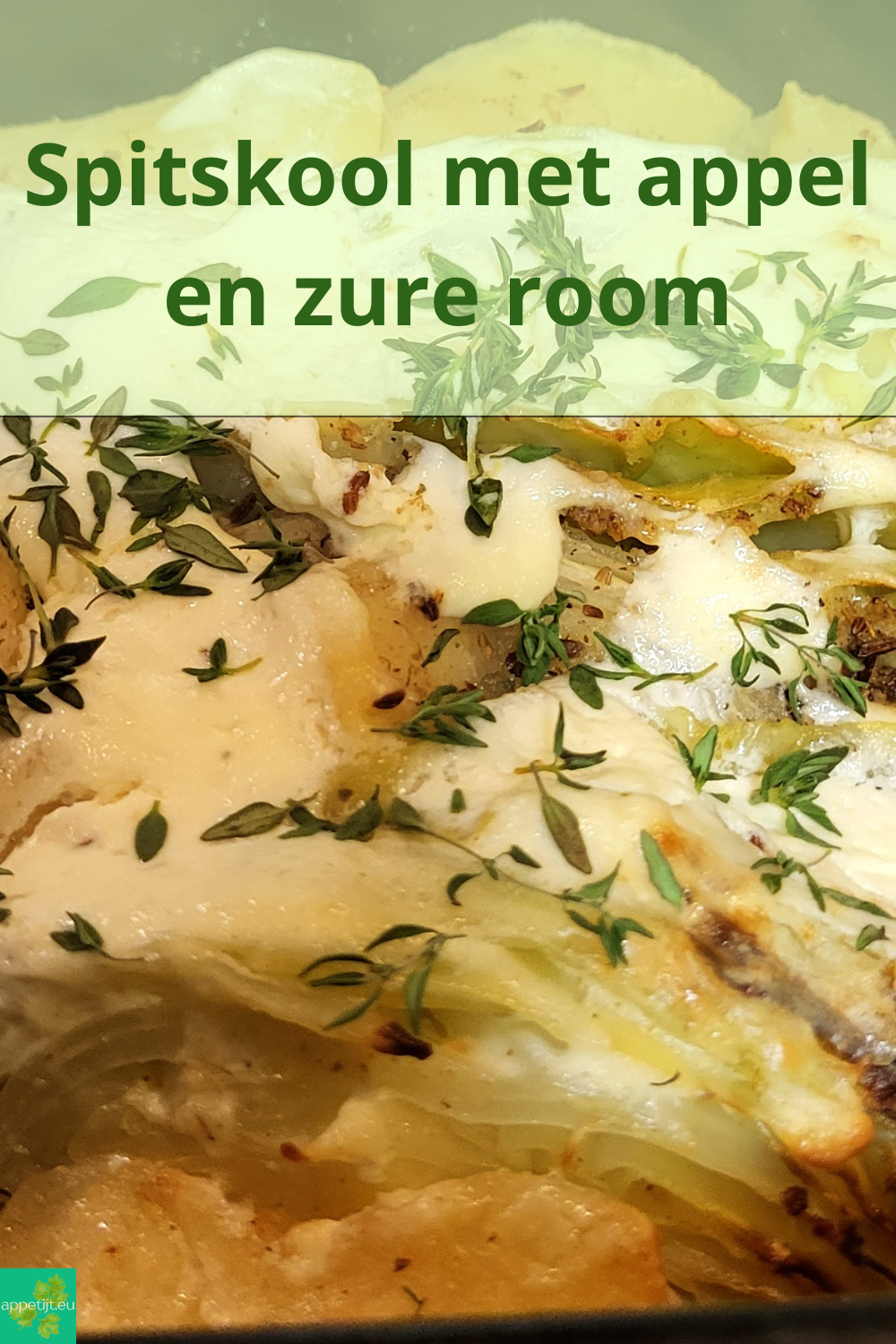 Appel schillen, in 8 parten snijden en tussen de kool schikken.