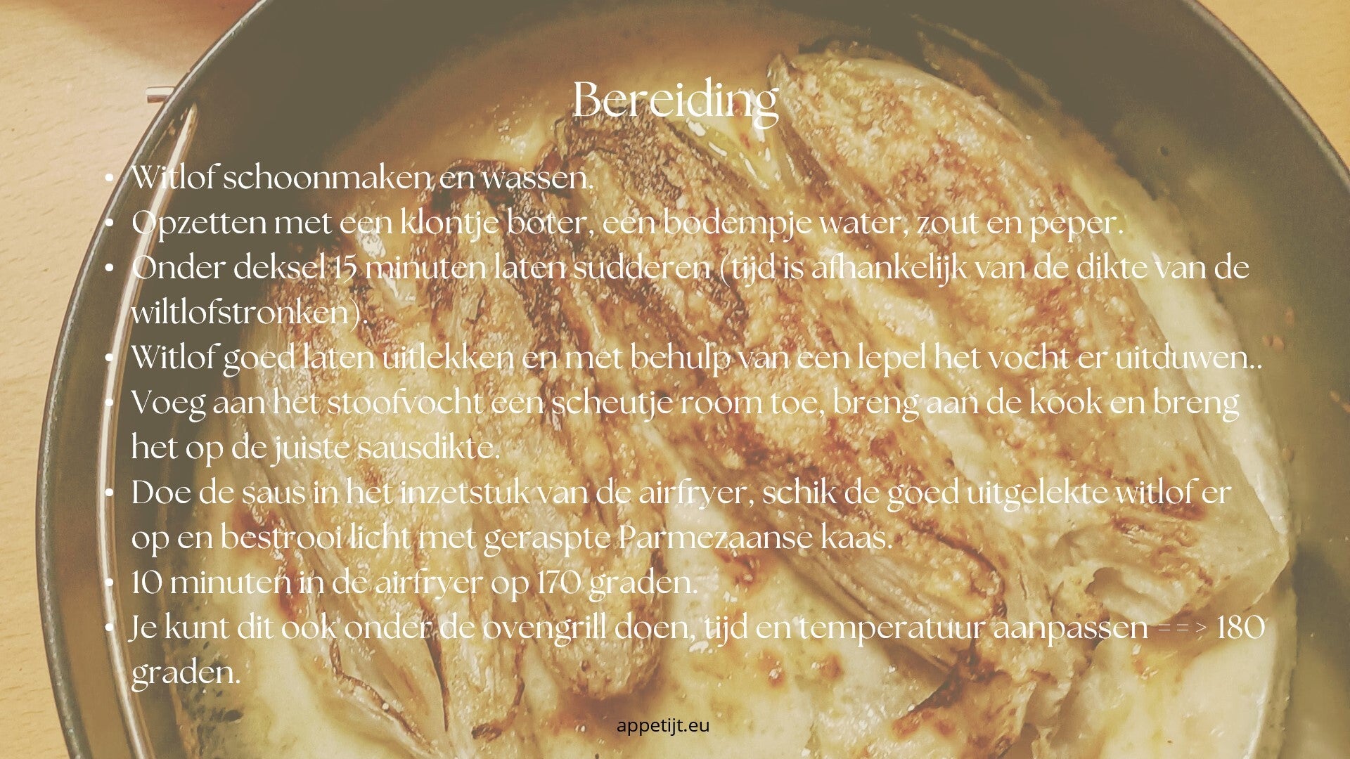 Witlof met kaassaus uit de oven is één van onze 'dagelijkse kost' gerechten. Deze romige witlofbereiding met echte Parmezaanse kaas is een verfijnde variant.