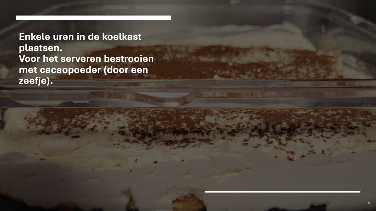 Voor het serveren bestrooien met cacaopoeder (door een zeefje).