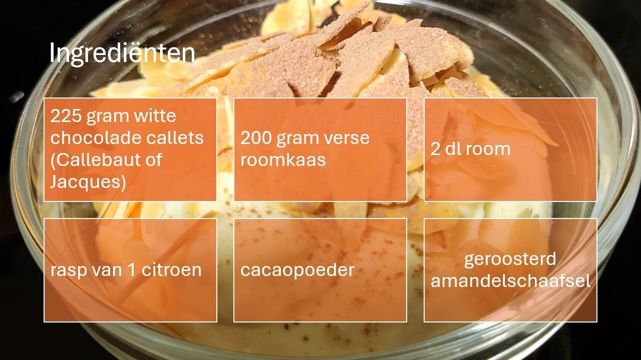 Verdeel over de dessertschaaltjes en laat enkele uren in de koeling opstijven.