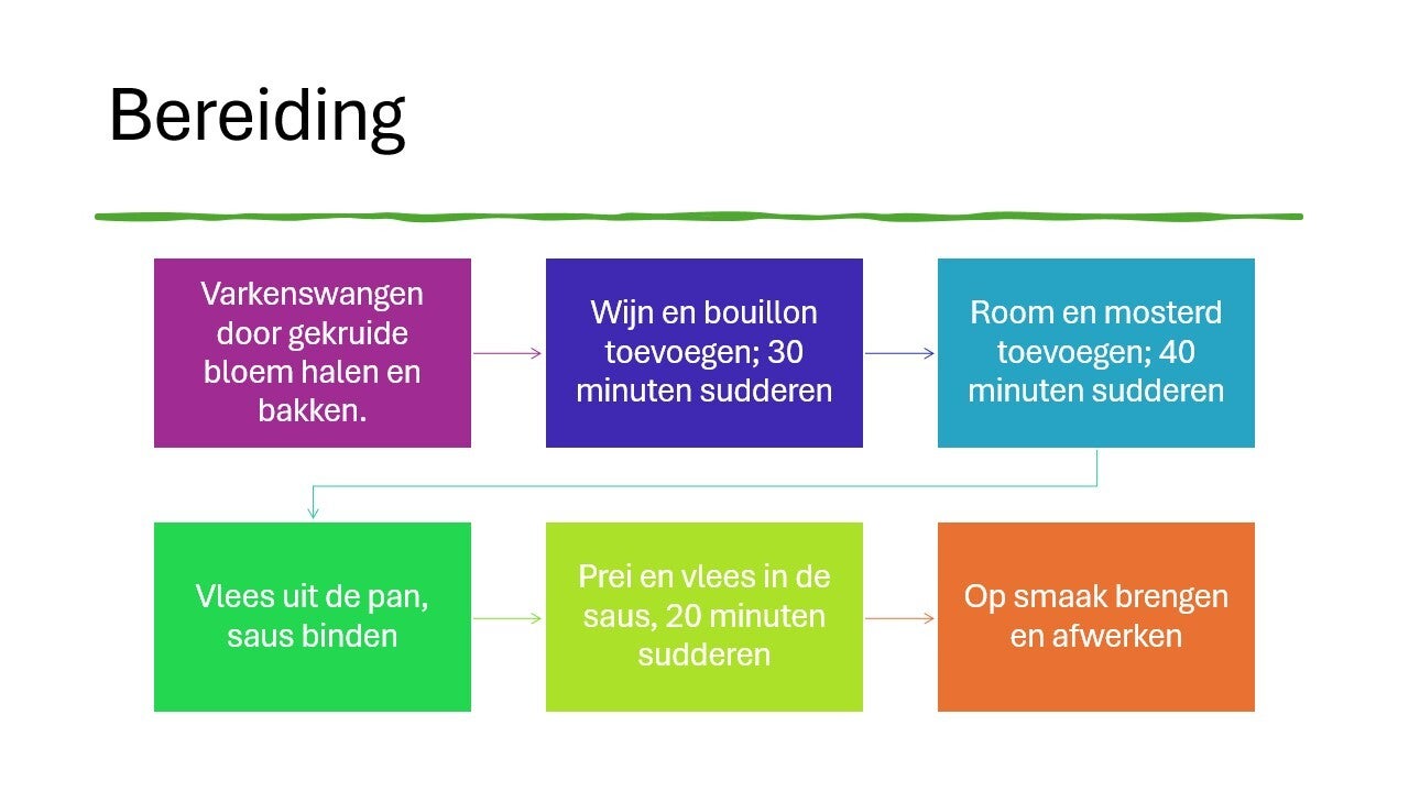 Room en mosterd toevoegen en weer 40 minuten zachtjes onder deksel sudderen