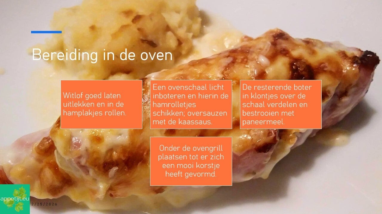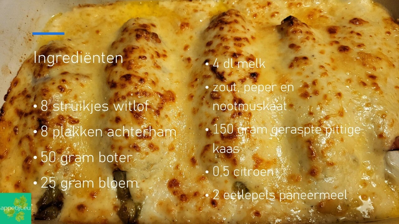 Gegratineerde hamrolletjes met witlof