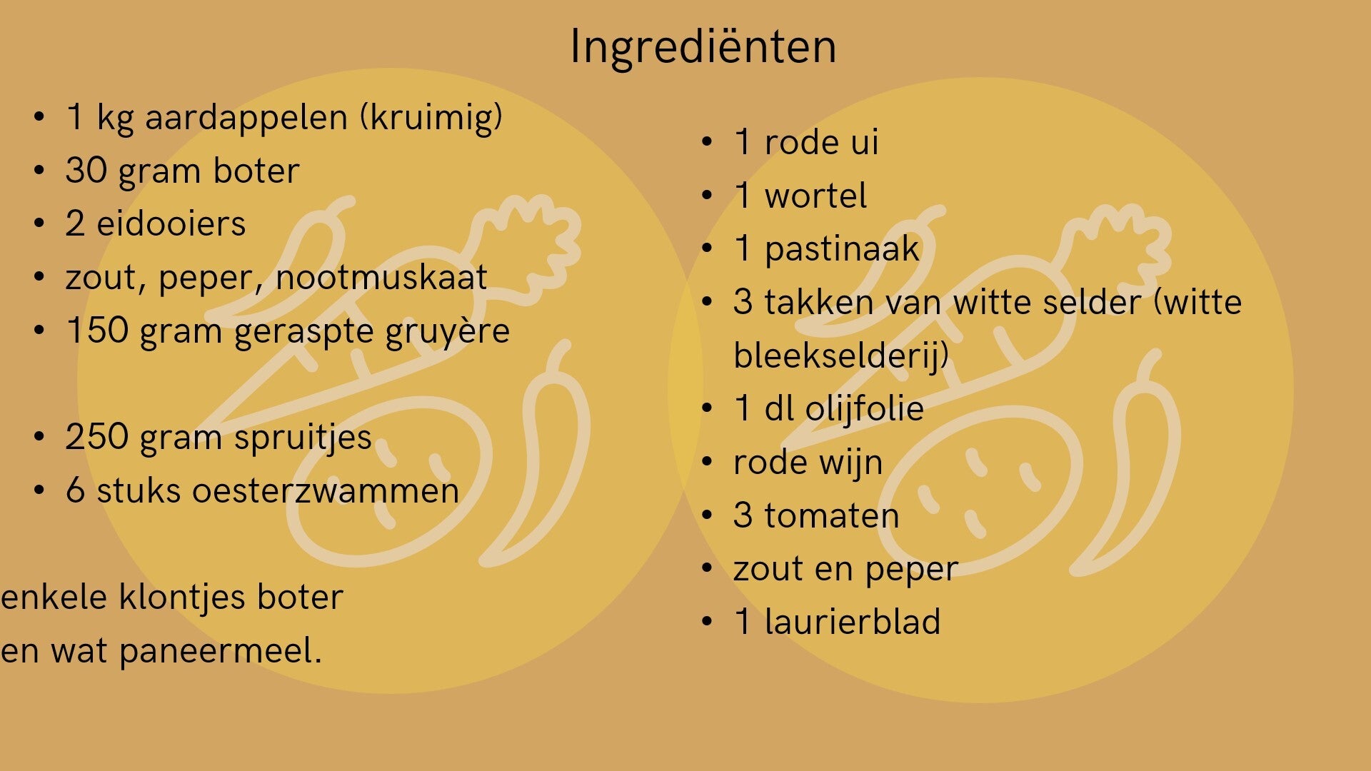 Een vegetarische ovenschotel met wintergroenten, rode wijn en aardappelpuree met kaas.