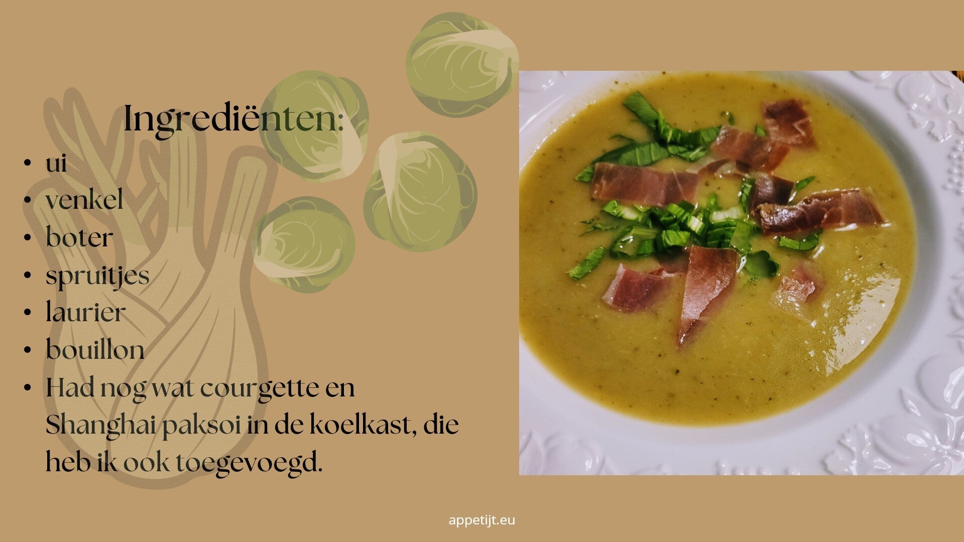 Spruitjes toevoegen en en eventueel een rest van andere groenten.