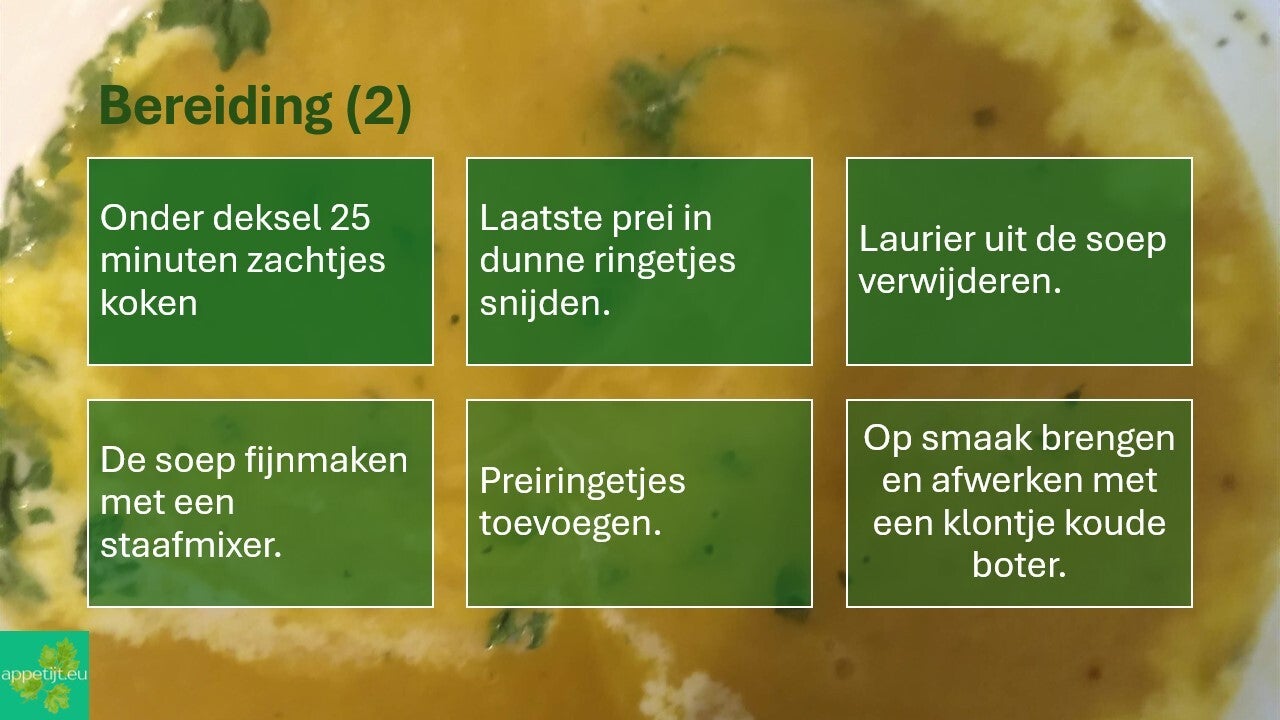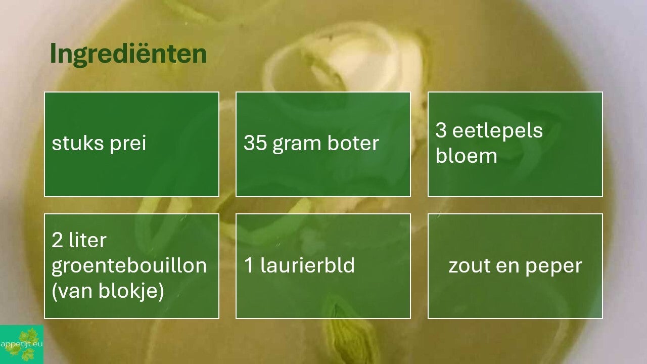 Als prei nu ergens voor gebruikt wordt, dan is het vooral voor soep. Komt in dit geval goed uit. Maar anderzijds ook wel een beetje jammer want prei is een fantastische groente!